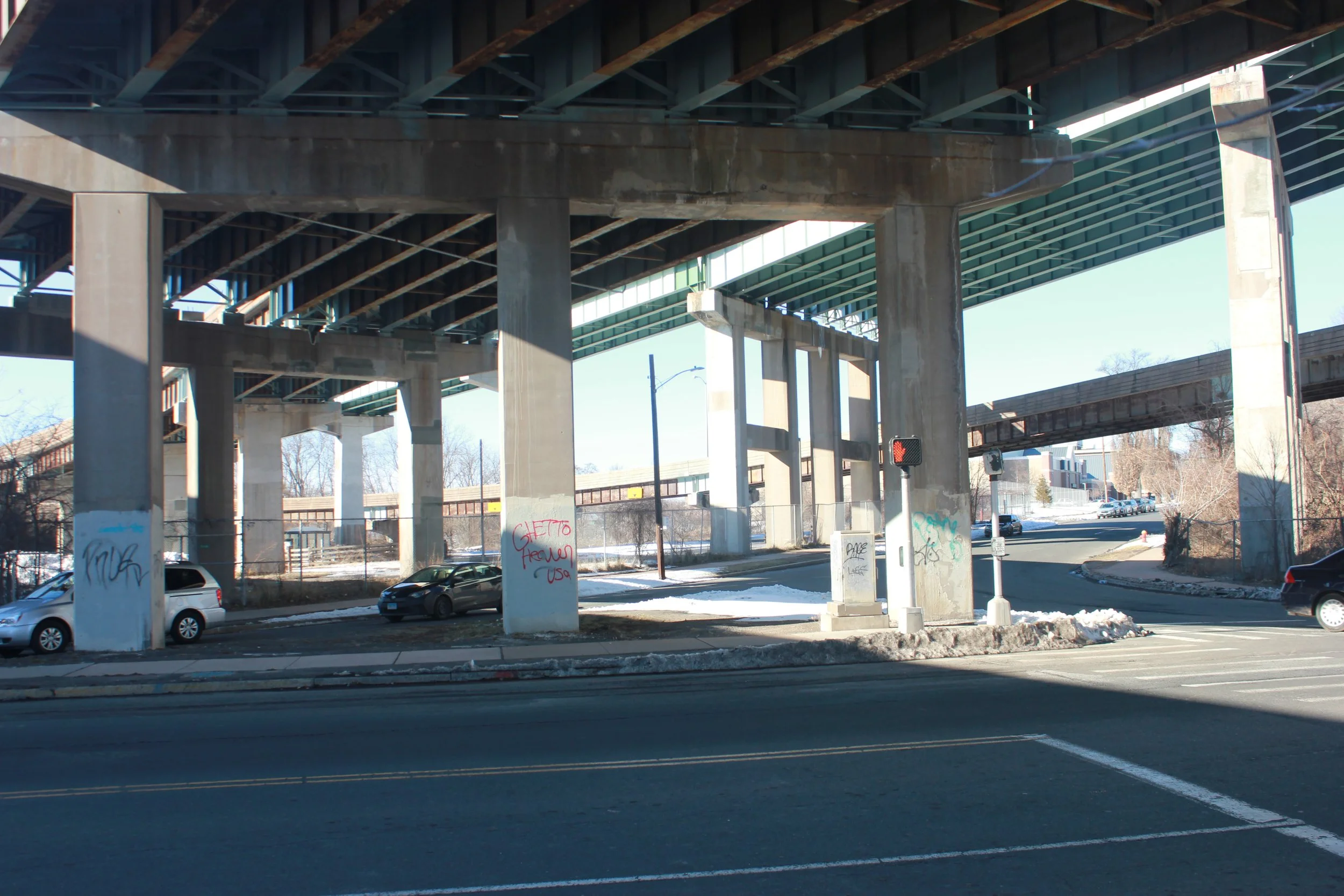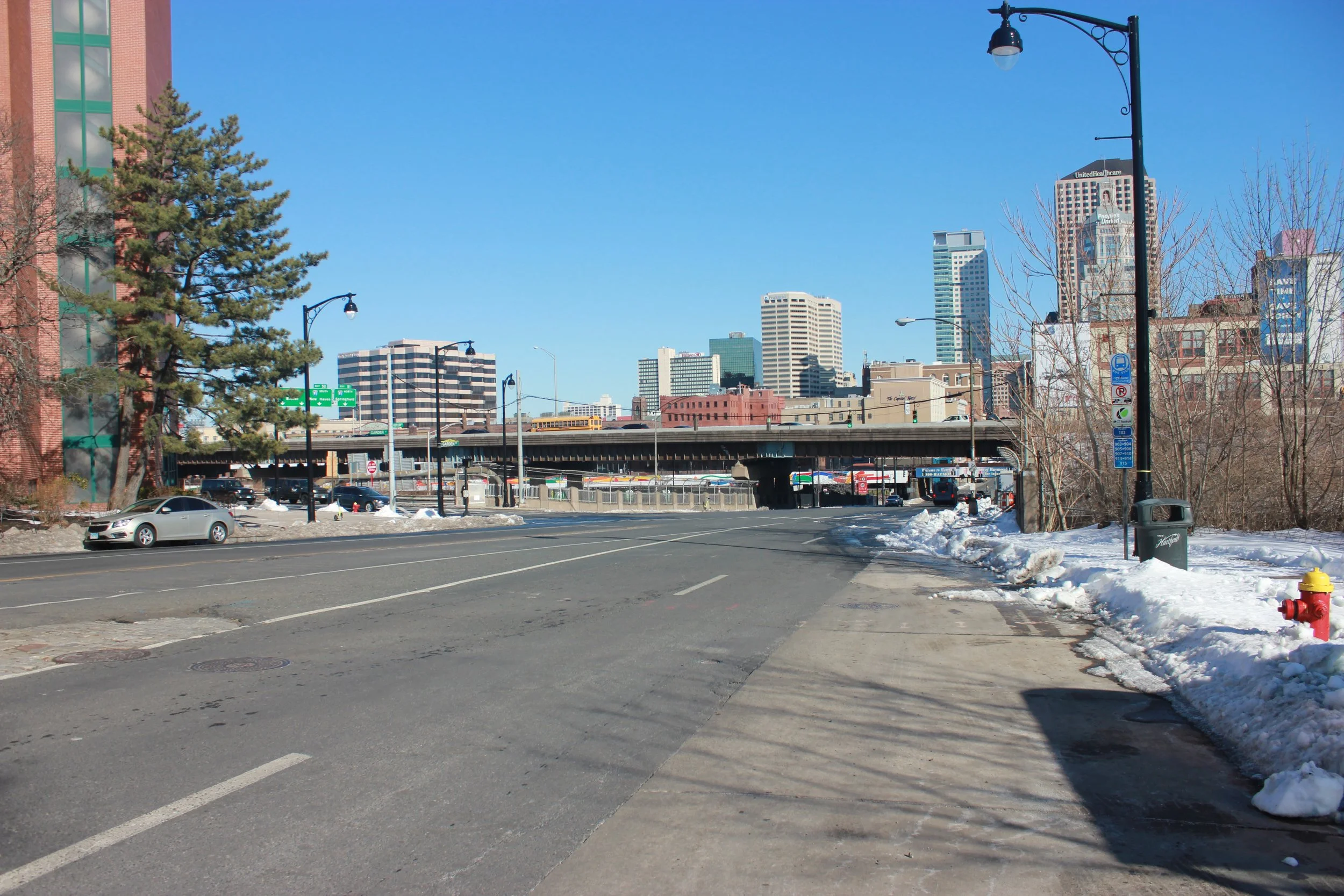 renamed ann uccello street after hartford’s first female mayor. this is another street that got divided due to the construction of the highway.