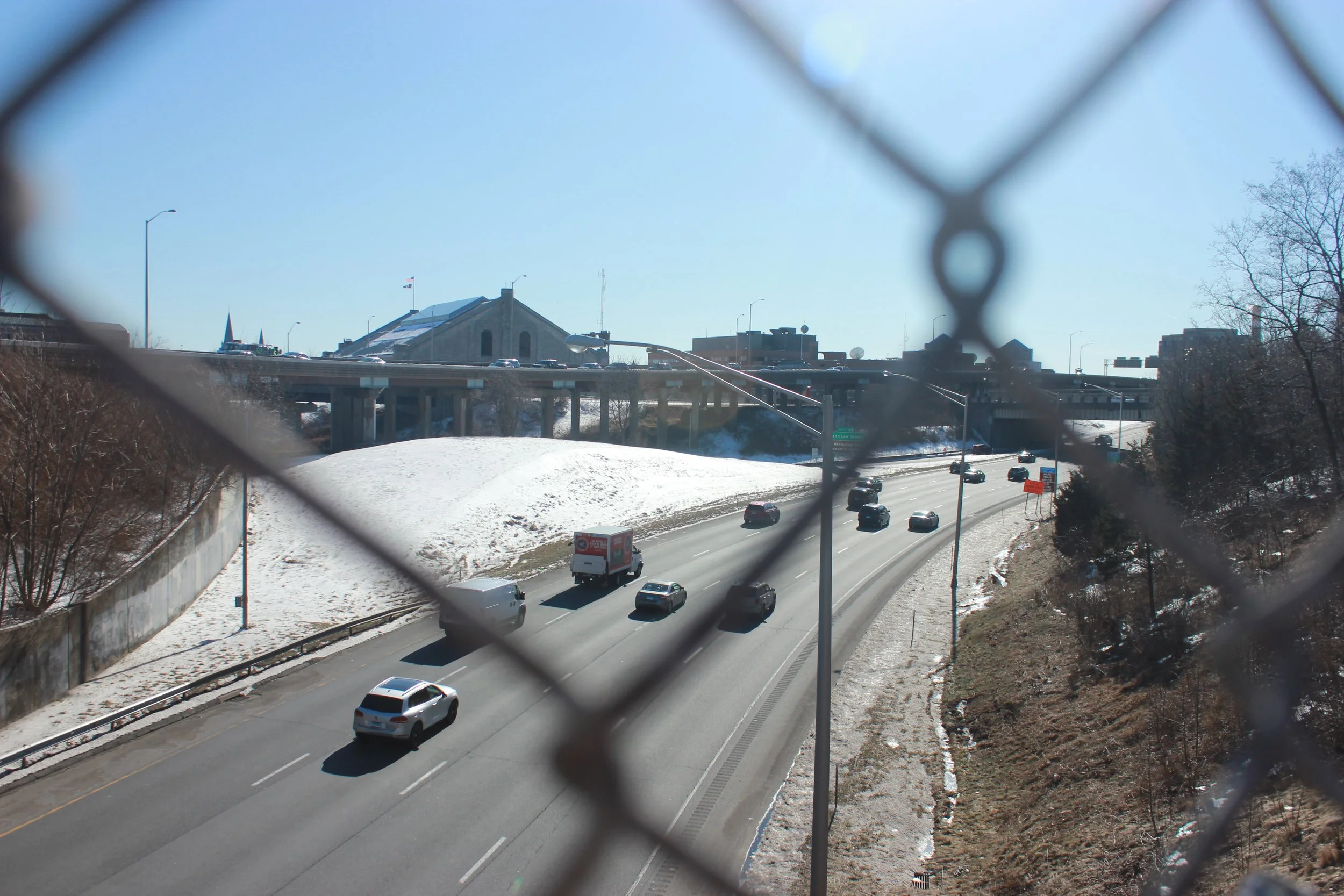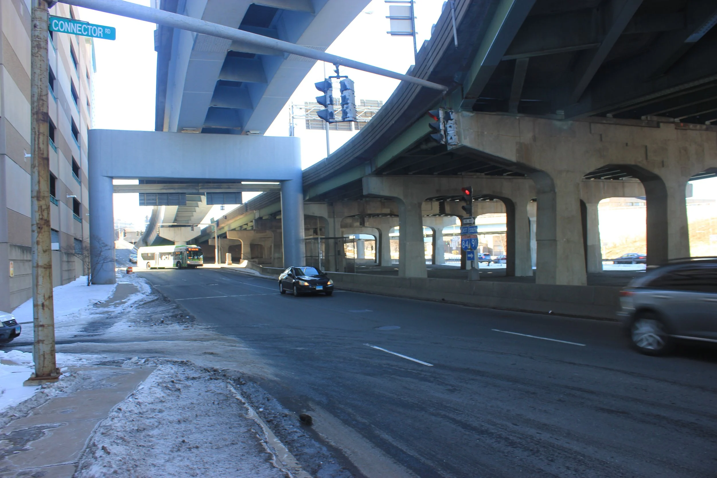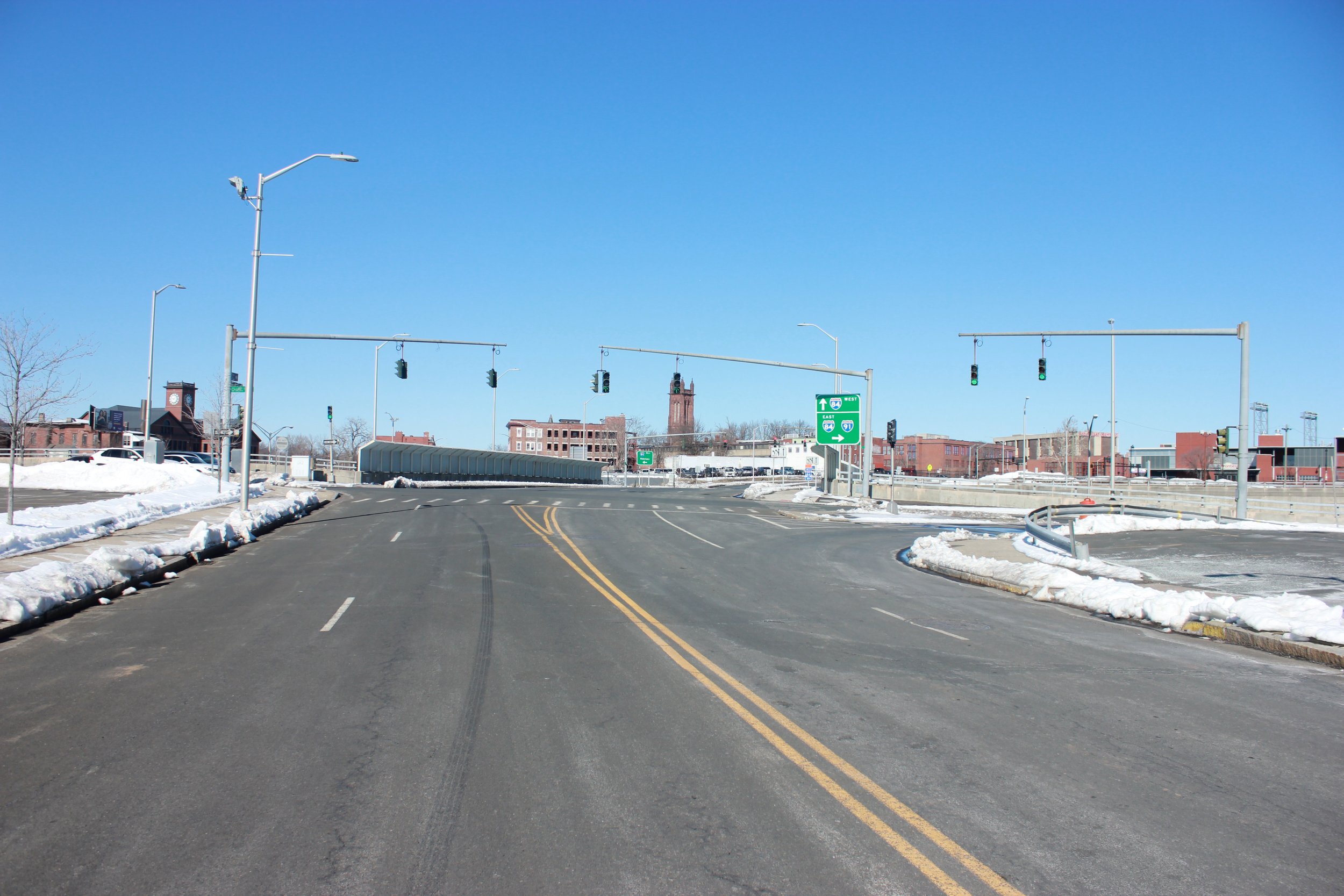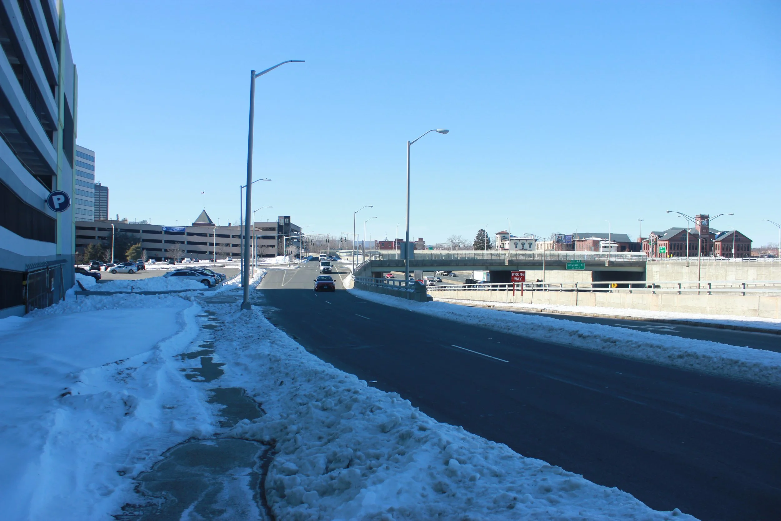 In the heart of downtown hartford. morgan street today is a small strip of Road alongside interstate 84.