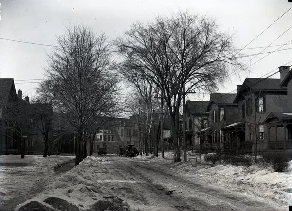 front street was widened to accommodate cars, the buildings were torn down to transform the community to a business only zone, and the street was renamed Columbus avenue.